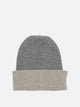 Brunello Cucinelli reversible cashmere beanie, made of ribbed double knit with cashmere yarn. The structure features a fitted and flexible silhouette, characterized by a double-layer construction that allows the cap to be worn on both sides. The uniform ribbed knit ensures elasticity and shape stability, offering a soft feel thanks to the all-cashmere composition.