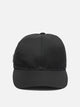 Prada's Re-Nylon baseball cap, made of regenerated yarn from the recycling and purification of plastics collected from oceans, fishing nets and textile fibers. The construction features a paneled structure with a curved silhouette and rigid visor. The design features a front-applied enameled metal triangle logo and cotton inner lining.