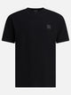 Stone Island cotton jersey T-shirt. The construction uses long-fiber, fine-knit combed cotton with a regular-shoulder silhouette and short sleeves. The garment features a ribbed neckline and front insert with a monochrome Compass patch applied to the chest. Garment dyeing stabilizes the color and provides uniformity to the surface. Double-stitched hem finish and lightweight construction.