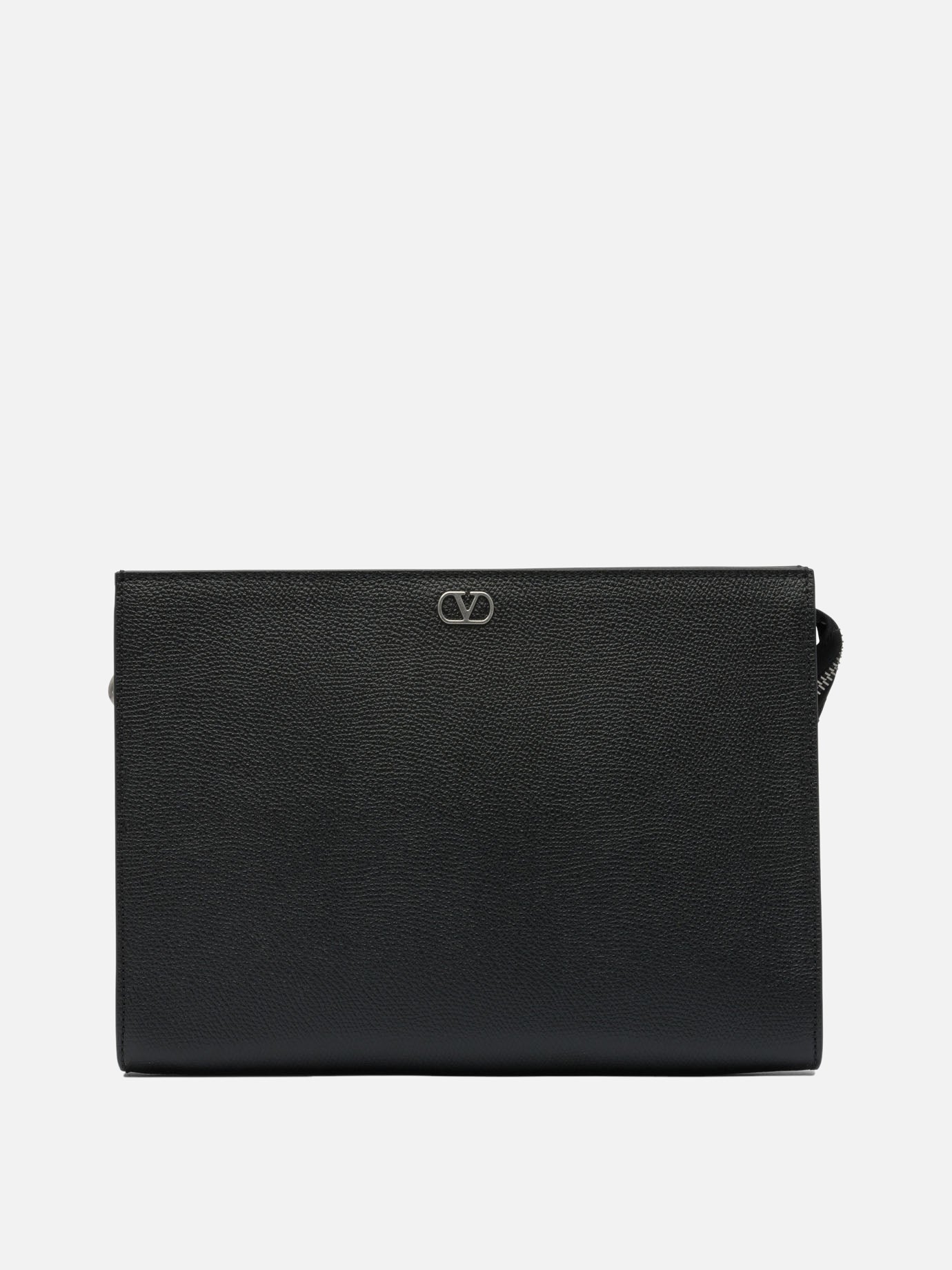 Valentino Garavani's "Vlogo Signature" pouch represents an elegant meeting of craftsmanship and contemporary design. Designed for the man who appreciates balance and functionality, this garnet calfskin pouch is designed to facilitate organization without sacrificing style. The model offers versatile portability, thanks to its removable leather handle, allowing for practical use in both formal and casual settings. An accessory that embodies quiet, versatile elegance suitable for a variety of occasions.