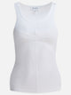 Alaïa cotton tank top made from jersey. The structure features a boat neckline and no sleeves, with a fitted silhouette and clean lines. The front panel features subtle darts that give shape to the garment. The hemline is straight. The edges of the neckline and armholes are ribbed finished for added structural definition.