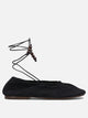 Alohas "Rosemary" ballet flats, constructed from cotton crochet, feature a lightweight and flexible construction. The open-weave upper promotes breathability for the foot. Thin laces wrap around the ankle and include wooden beaded trim. The silhouette is basic, with an elasticized neckline for an adaptable fit. The footbed is leather, while the rubber sole ensures stable footing and everyday comfort.