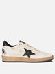 Golden Goose "Ball Star" sneakers made with a nappa leather upper and technical suede details. The structure features a low silhouette, side reinforcement and star-shaped side applique with glitter finish. The heel is finished in suede and glitter. Padded tongue and inner part for comfort, solid rubber stitched sole with regular profile, lace-up front and integrated metal eyelets. Clean shapes and visible technical stitching.