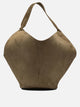 Khaite "Lotus" shoulder bag, constructed with a structure without internal rigidity, features a soft silhouette reminiscent of the flowing lines of a scarf. The main body made of lightweight material promotes portability, while the rounded base provides greater stability. Integrated handles allow for comfort when wearing over the shoulder, highlighting an essential construction designed for everyday use.