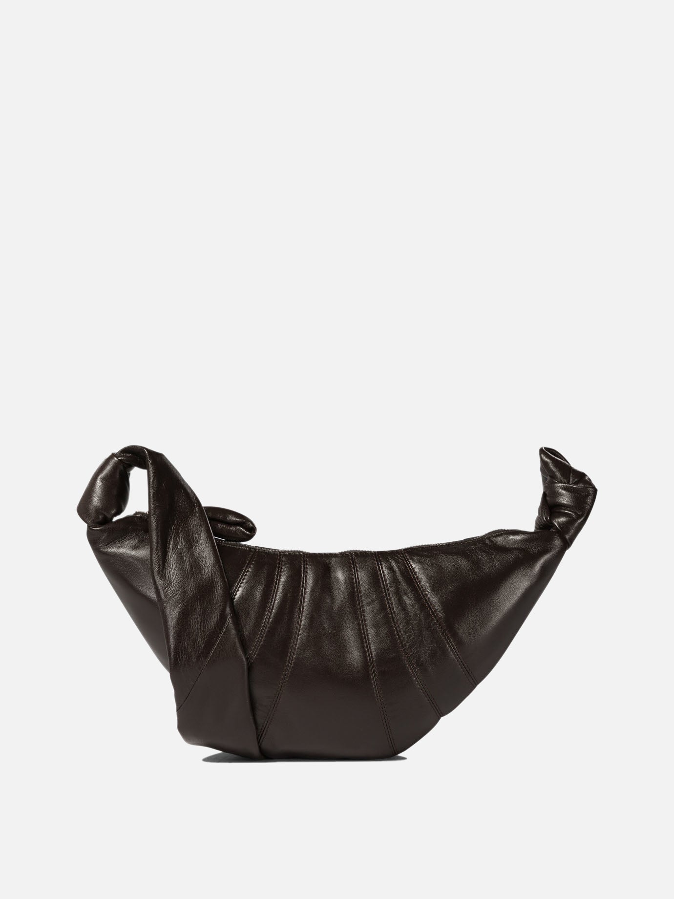 Lemaire's Small Croissant is an elegant and functional shoulder bag designed for the modern woman who loves design and practicality. Made of soft nappa lambskin leather, it is distinguished by its meticulous finish and design inspired by the shape of a croissant, achieved through exposed stitched cutouts. This bag can be worn either on the shoulder or over the shoulder, providing versatility and style for any occasion.