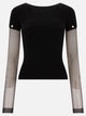 Max Mara Sportmax crew-neck T-shirt in medium-weight stretch viscose, featuring a regular line and fitted structure. The garment features a boat neckline and removable long sleeves, made of transparent viscose, secured by custom buttons. Front stockings draw the bust line. The construction combines a compact knit and functional details designed for modularity and versatility of use.