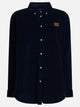 Miu Miu logo corduroy shirt made of corduroy with unlined construction and straight silhouette. The collar is classic, while the front closure uses applied buttons. The cut is relaxed, with soft lines inspired by the men's wardrobe of the 1990s. Suede details, such as patches and applied logo on the profile, complete the construction. Long sleeves finished with buttoned cuffs.