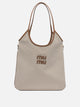 Miu Miu "Ivy" shoulder bag, made of aged processing nappa leather, features a silhouette defined by soft lines and semi-rigid structure. The handles are constructed of leather and attached to the structure with gold metallic details. The interior is finished in cotton fabric and integrates a zippered pocket. The front area houses the leather-applied lettering logo.