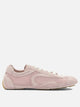 Prada "Montecarlo Re-Edition 2005" sneaker with suede and Re-Nylon upper designed with a deconstructed driver-inspired structure. The upper features leather inserts for added support, a flat string lacing and a linear finish. The interior lining is made entirely of leather, while the removable footbed, also covered in leather, provides extended comfort. The silhouette remains lightweight thanks to the flexible rubber outsole.
