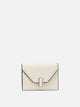 Valextra Millepunte calfskin leather "Isis Trifold" wallet with compact structure and defined silhouette. Shiny light gold-colored rectangular metal clasp is the continuity detail of the Isis line. Interior organization includes three 'V' cut card compartments, banknote compartment and integrated zippered coin purse. Interior details finished in Ink, black lacquered edging hand-painted according to the Costa technique.