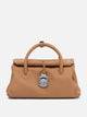 Zanellato "Dotta" handbag with a compact silhouette and structured construction. Made of grained leather, it features a roll-top closure with integrated magnetic system and tubular ribbons with twist-lock buckle. The top handle allows for hand carry, while the adjustable and removable shoulder strap offers flexibility in use. The interior is organized by a technical pocket for storing essential items.
